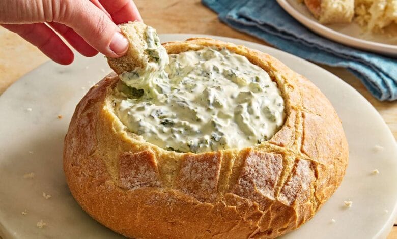 “My dad’s spinach dip recipe,” says recipe submitter Shauna. “The whole family loves this flavorful spinach mix in a delicious bread bowl.” Creamy, garlicky, and scoopable, this nostalgic dip is the ultimate holiday crowd-pleaser.