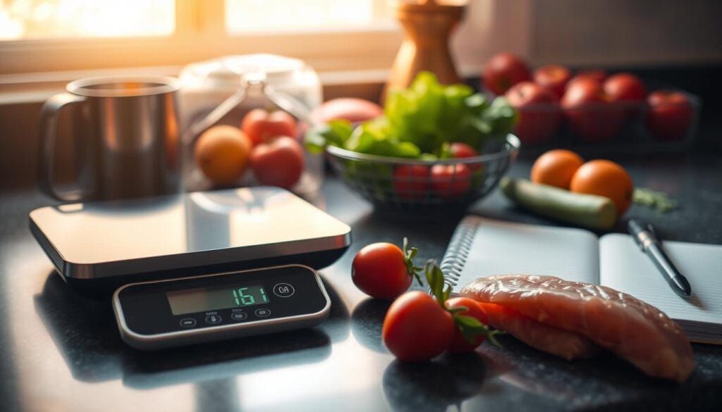 Digital food scales and measuring tools are crucial for tracking calorie intake. They let you measure the exact amount of food you eat. This makes it easier to calculate your calorie deficit.